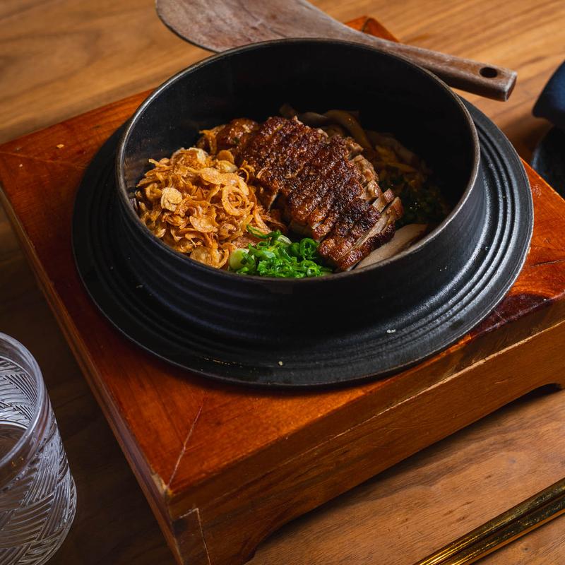 Smoked Duck, king oyster, truffle, chicken stock, crispy onion, scallion.