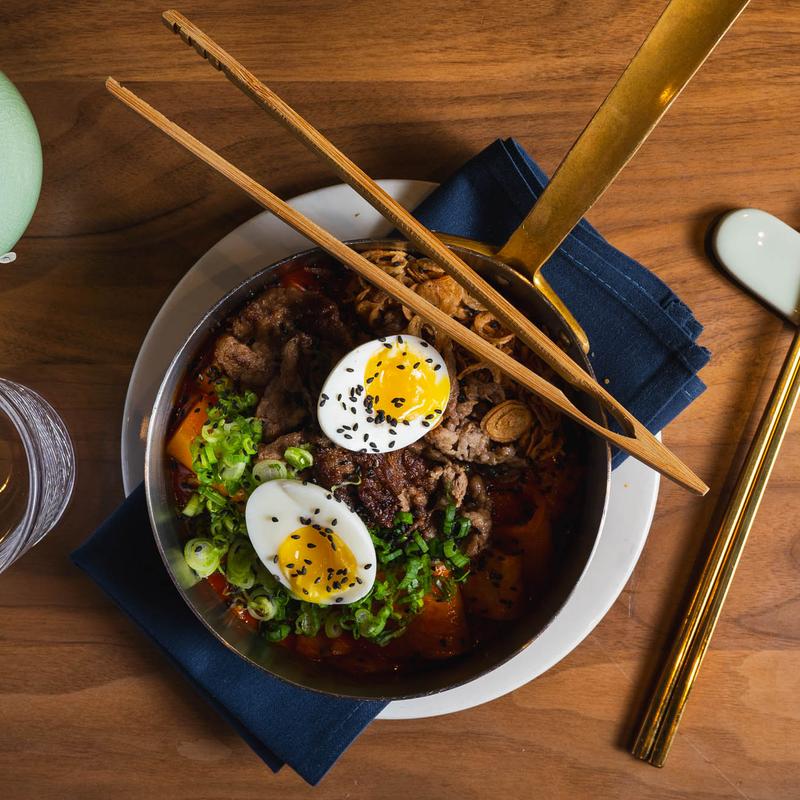 Fermented soy broth, ginger, scallion, radish, chili, onion.
