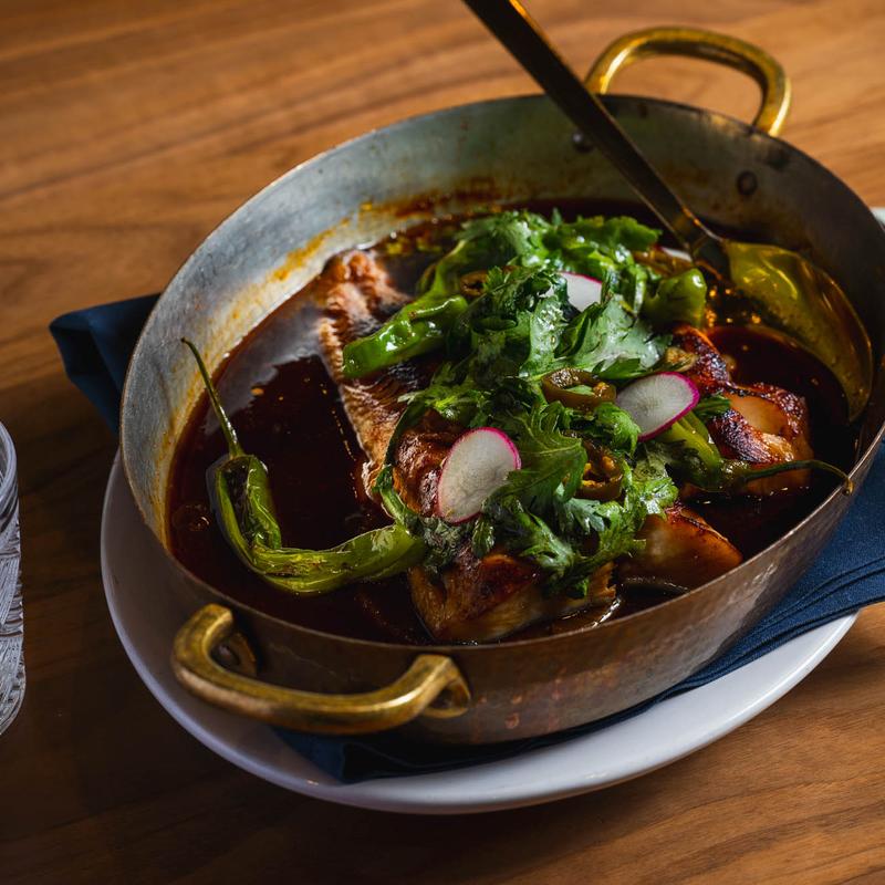Chili oil, fermented chili, raisins, crispy shallots, sesame, yuzu aioli.
