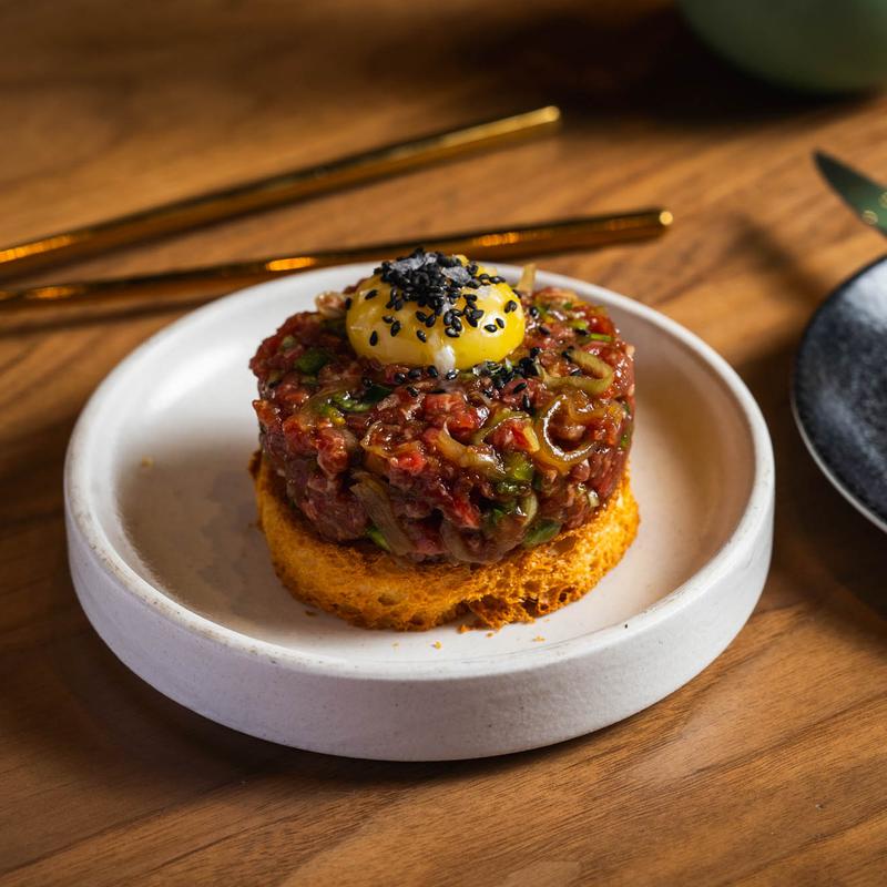 Asian pear, jalapeno, scallions, egg yolk, garlic soy marinade, and brioche toast.